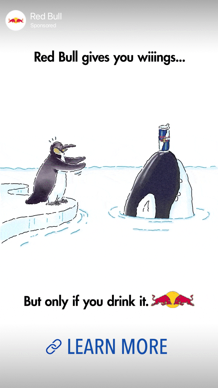 A playful Snap Lens stacked penguins into a timing game, where users aligned a moving line with a fixed vending-machine button. Winners received a free can from Red Bull, mailed in the campaign’s orca-themed packaging.